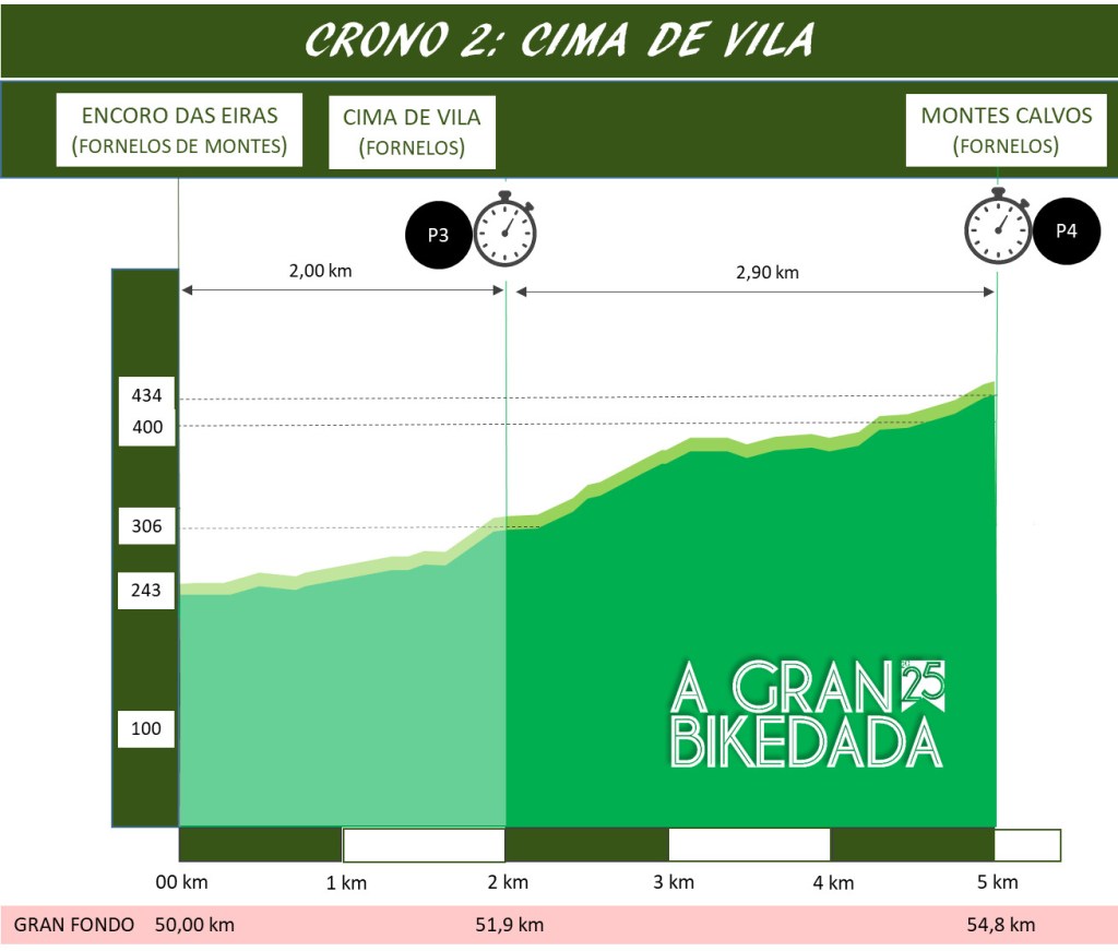Crono 2: El itinerario de la segunda crono es común para todos los participantes en la distancia de gran fondo. El puerto arranca suvemente en el embalse y los tiempos se empiezan a tomar en las últimas casas de la aldea de Cima de Vila.